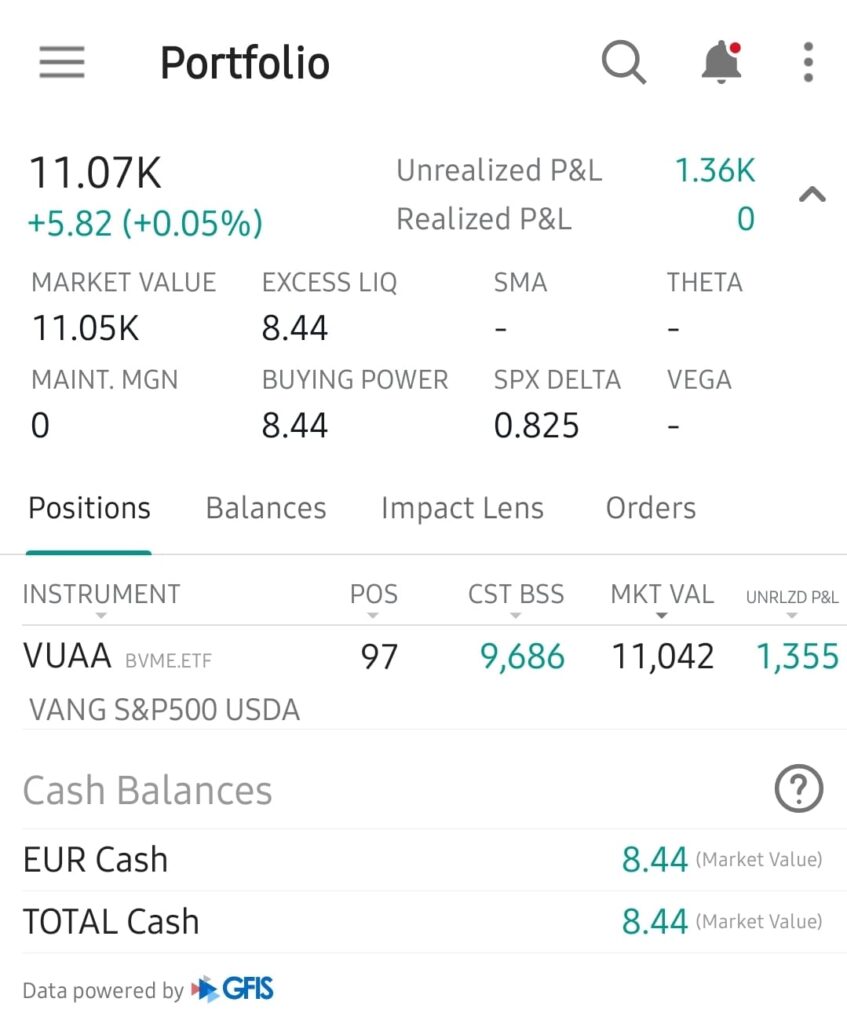 – Cumpărare: 5 x VUAA @ 110,84 €